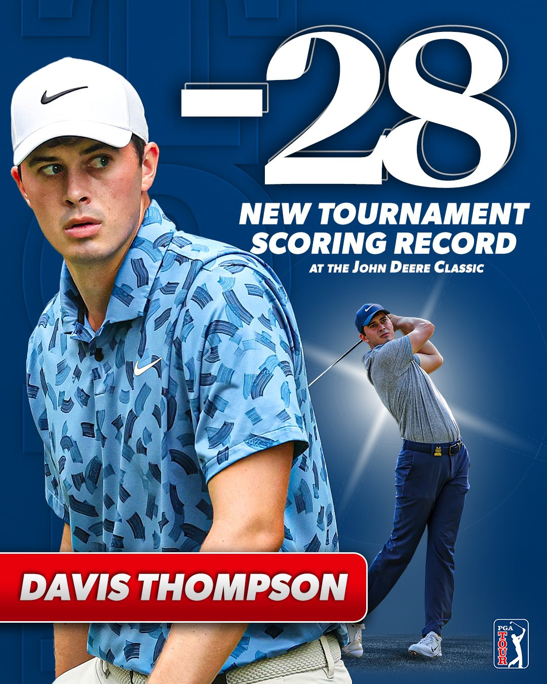 Davis Thompson đã có một chiến thắng ấn tượng tại John Deere Classic 2024, khi anh vượt qua tất cả để giành chức vô địch đầu tiên trên PGA Tour với tổng điểm -28, phá vỡ kỷ lục của giải sau 4 vòng đấu.