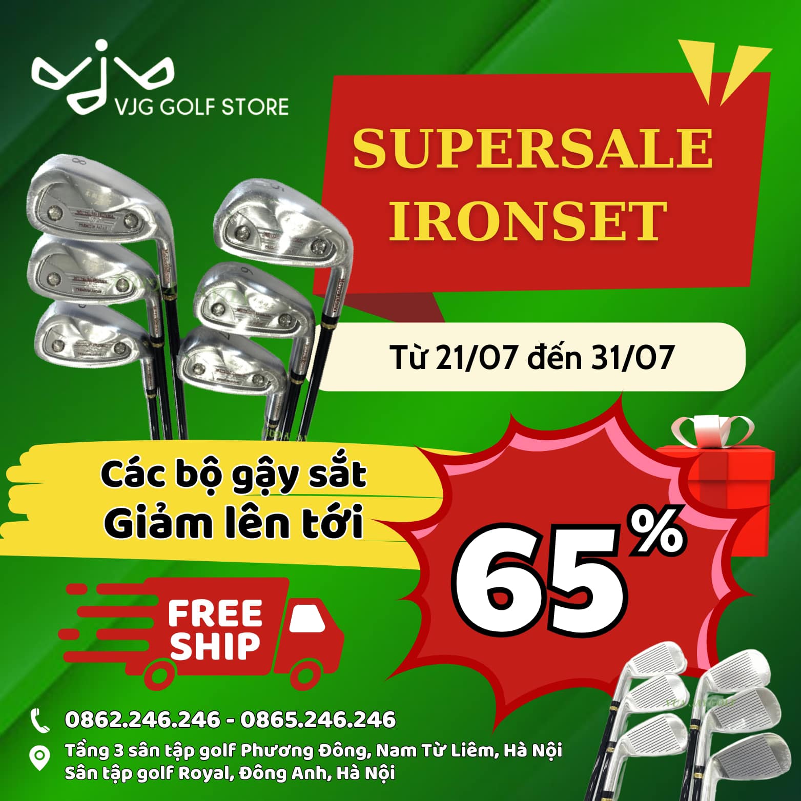 Duy nhất tại 𝐕𝐉𝐆 𝐆𝐎𝐋𝐅 𝐒𝐓𝐎𝐑𝐄 mùa hè này, 𝐈𝐑𝐎𝐍𝐒𝐄𝐓 𝐆𝐈𝐀̉𝐌 𝐒𝐀̂𝐔 lên đến 65%!