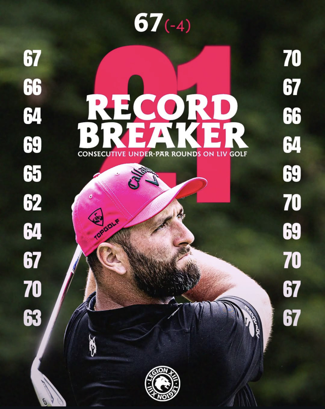 Tại LIV Golf Singapore, Rahm ghi 67 gậy (-4) ở vòng đầu, sau đó là 70 gậy (-1) ở vòng hai, qua đó chạm mốc 20 vòng đấu liên tiếp dưới par – san bằng kỷ lục do Bryson DeChambeau nắm giữ suốt gần hai năm. Nhưng golfer người Tây Ban Nha không dừng lại ở đó. Ở vòng đấu cuối tại Sentosa Golf Club, Rahm tiếp tục chơi xuất sắc với 67 gậy (-4), chính thức phá kỷ lục với 21 vòng liên tiếp dưới par. Đáng chú ý, anh chưa từng đánh quá 70 gậy kể từ khi gia nhập LIV Golf.