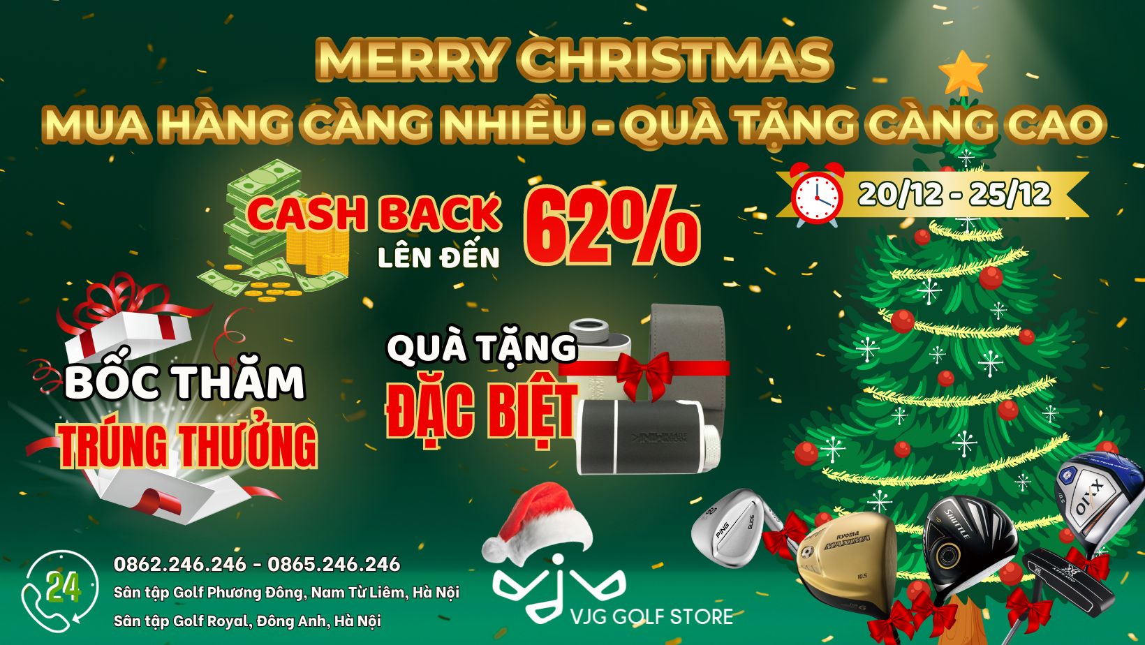 🔥 Quý Golfer hãy đến ngay với GIÁNG SINH ẤM ÁP cùng những phần QUÀ CỰC KHỦNG từ Ông già NOEL đang luôn thường trực tại VJG GOLF STORE nhé 🎅❤️