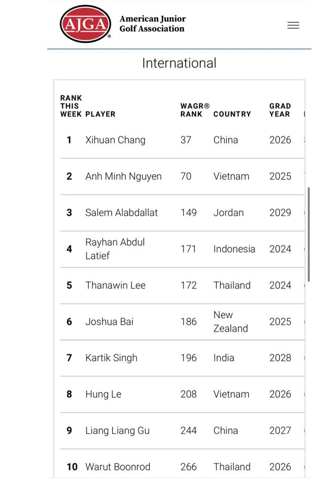 Nguyễn Anh Minh và Lê Khánh Hưng đã xuất sắc xếp thứ hai và thứ tám trên bảng xếp hạng của đội Quốc tế, đảm bảo suất tham dự. Thành tích này là minh chứng cho nỗ lực và tài năng của hai golfer, đồng thời là cơ hội để quảng bá hình ảnh golf Việt Nam ra thế giới.