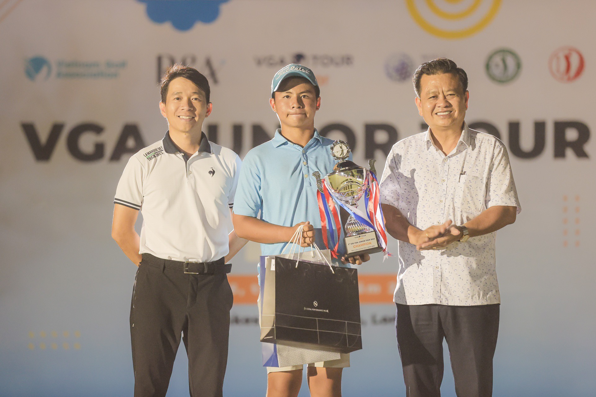 Nguyễn Tuấn Anh (giữa) - nhà vô địch chặng 2 VGA Junior Tour 2024. Ảnh: VGA